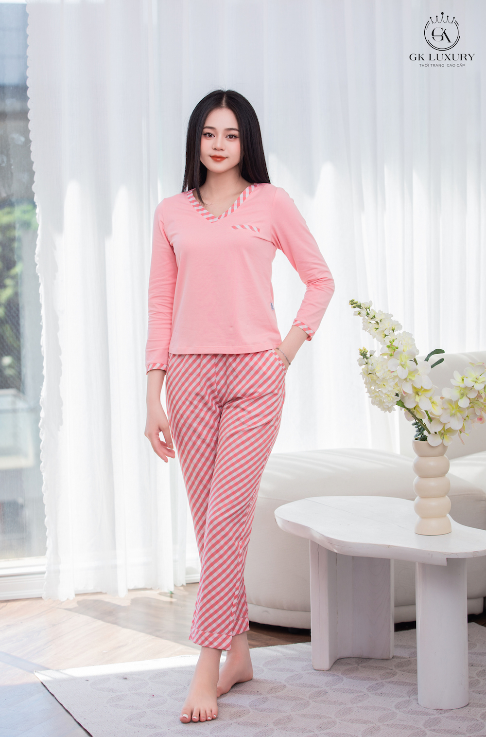 Bộ cotton tay dài quần dài Kẻ DGKC25229D